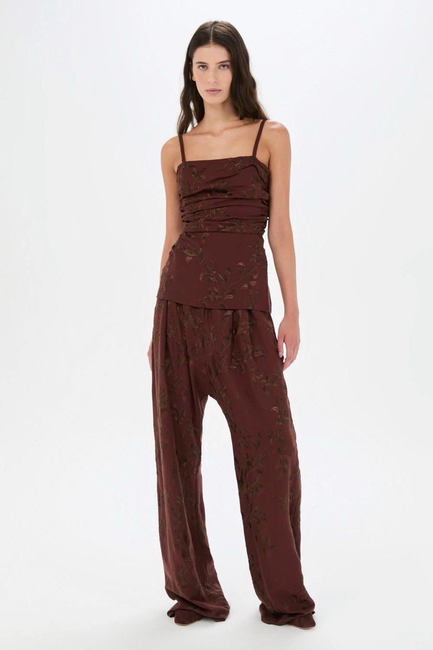 Blusa Cris Barros Marrom Modelo Adele Em Linho
