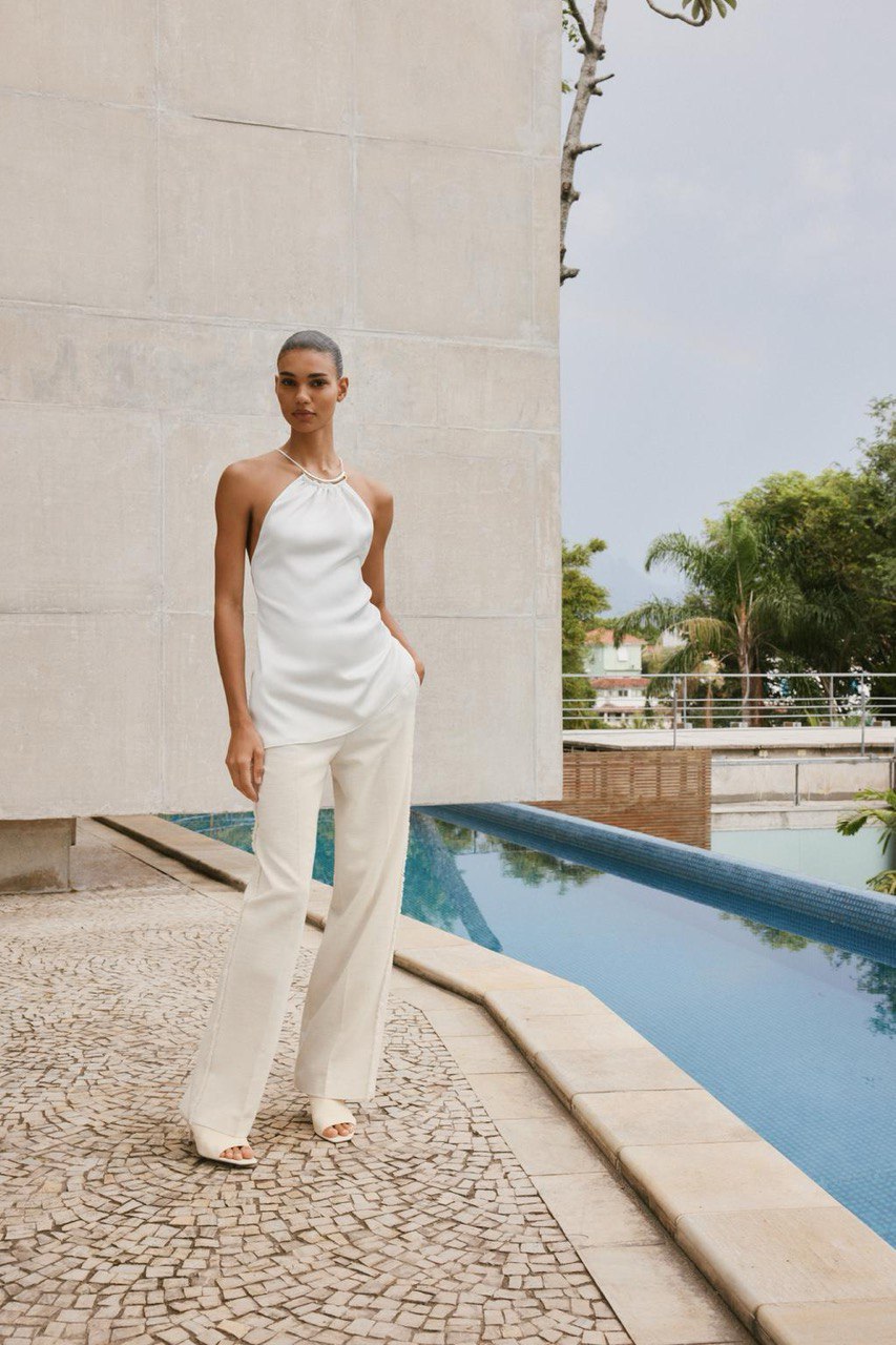 Calça Zara Bege Reta Com Franjas