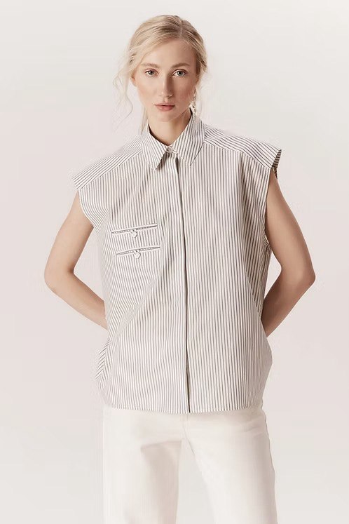Camisa Andrea Marques Branca Listrada Sem Mangas