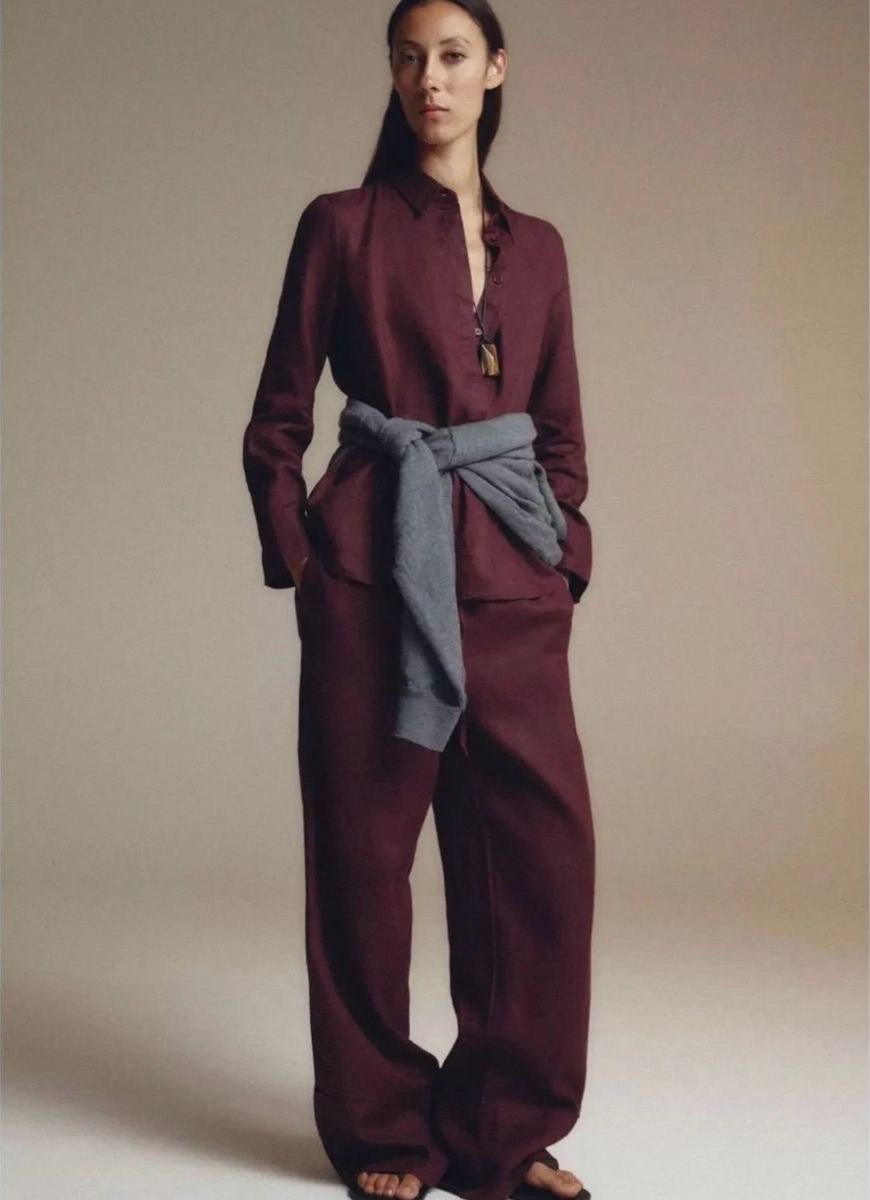 Camisa Zara Vinho Em Linho