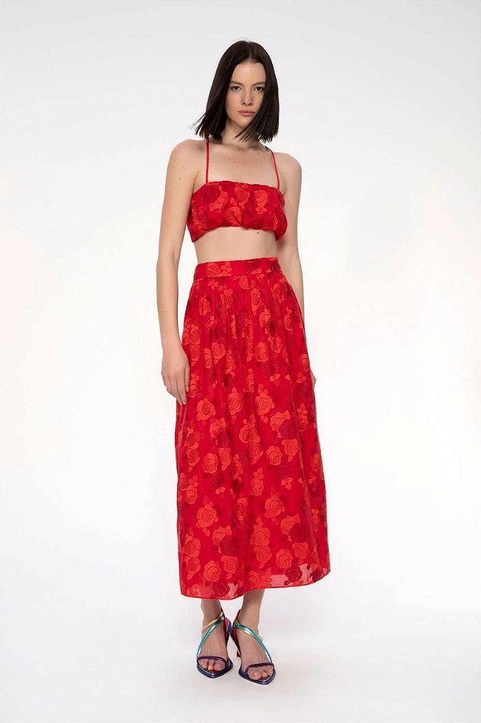 Conjunto Cris Barros Saia e Blusa Vermelho