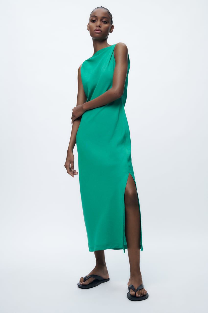 Vestido Zara Longo sem Tecido Cupro Verde Tiffany