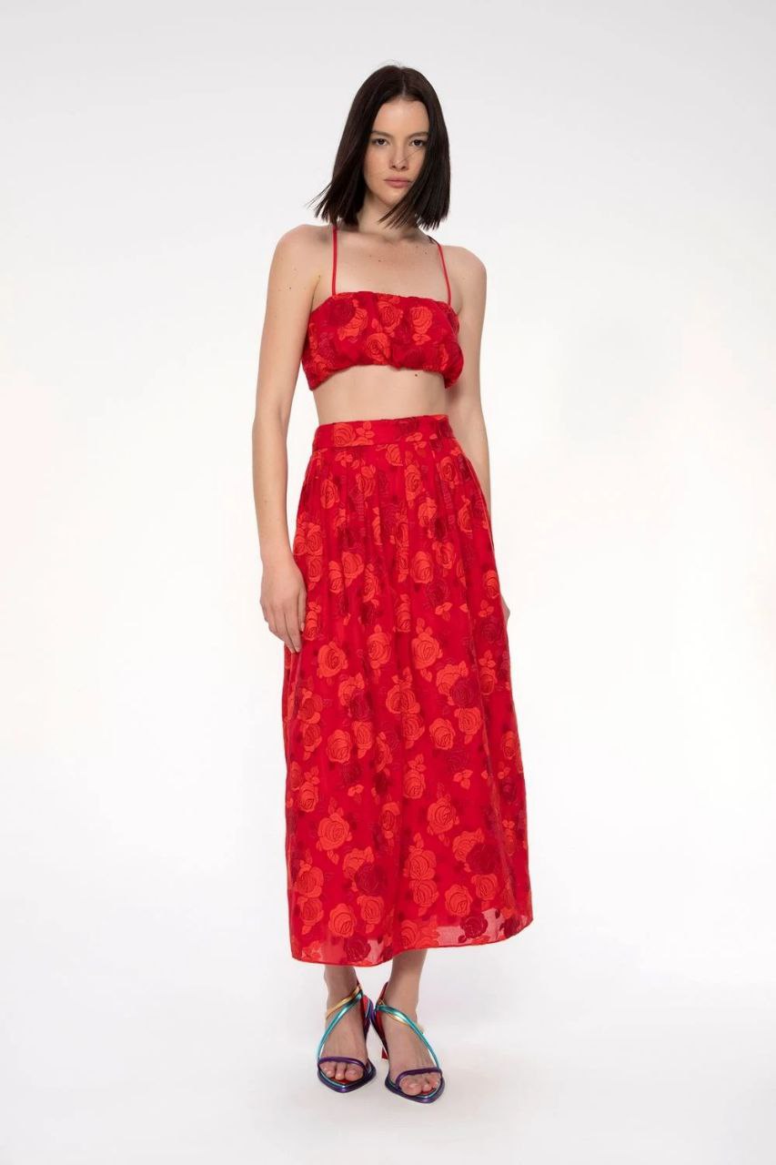 Top Cris Barros Vermelho Floral Modelo Yvanna