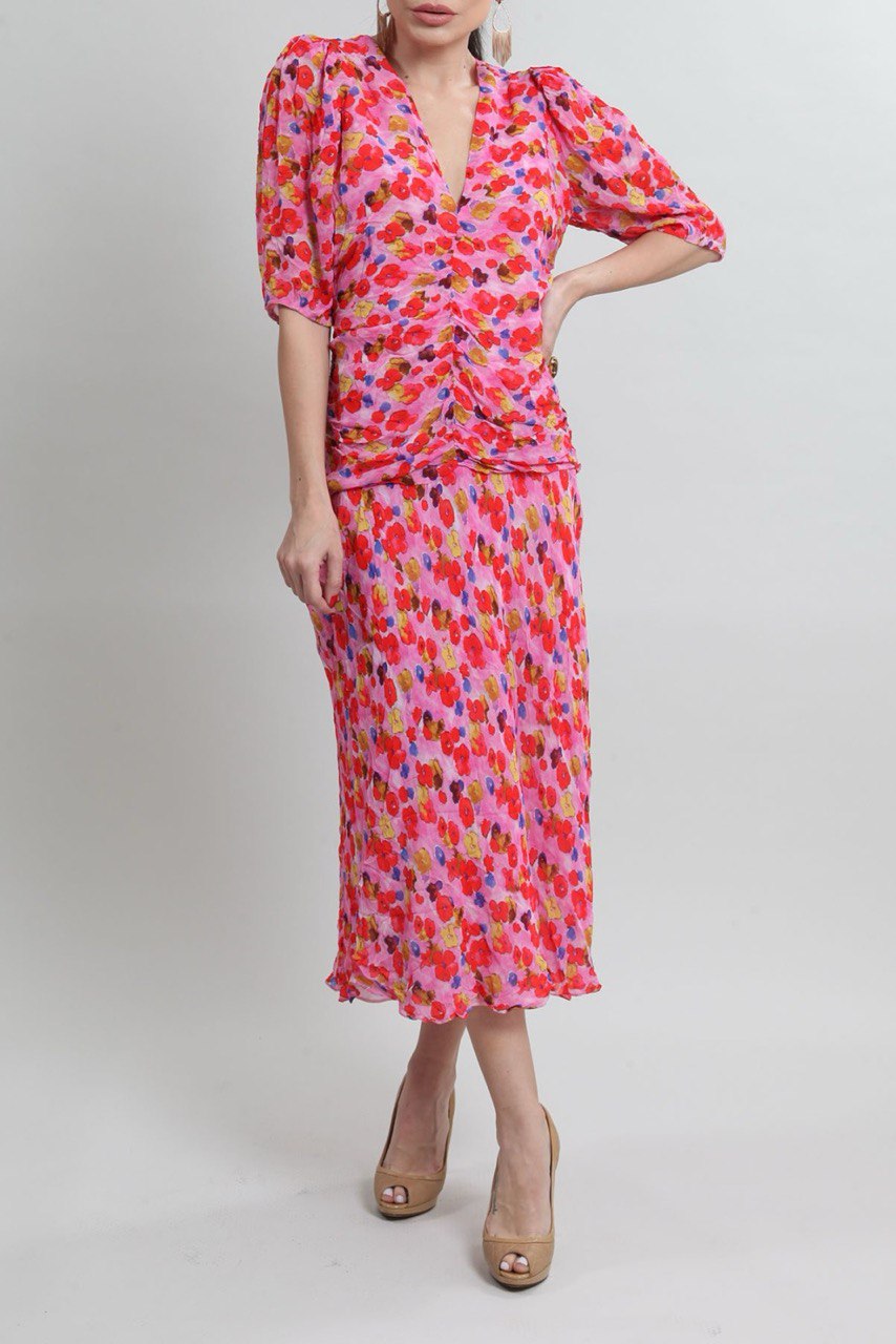 Vestido Cris Barros Rosa Estampado Longo