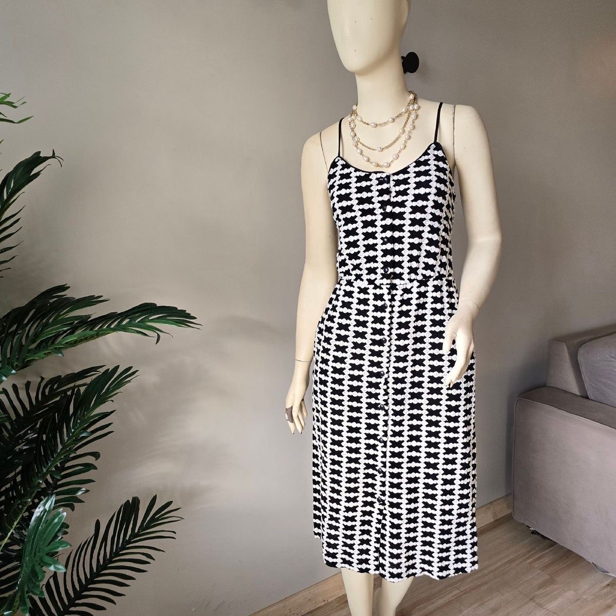 Vestido Midi Mixed Preto e Branco Alças
