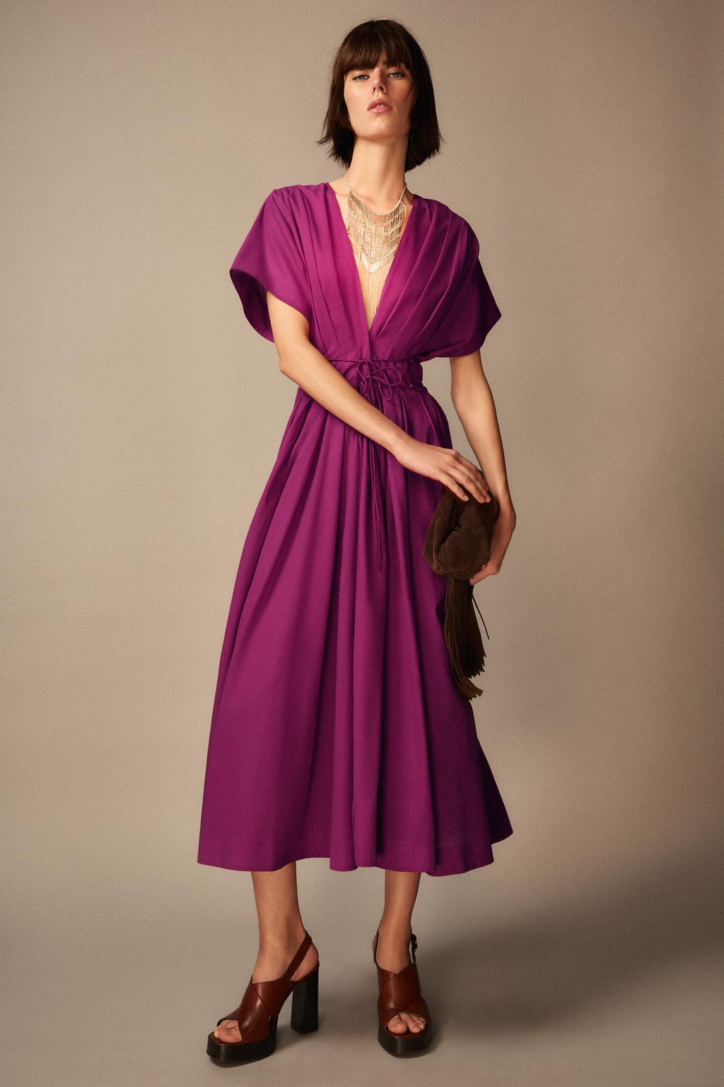 Vestido Midi Zara Rosa Botões Frontais
