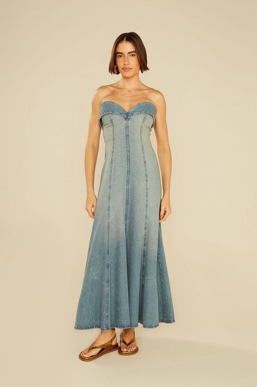 Vestido Longo Oh Boy Jeans Índigo Sem Alças